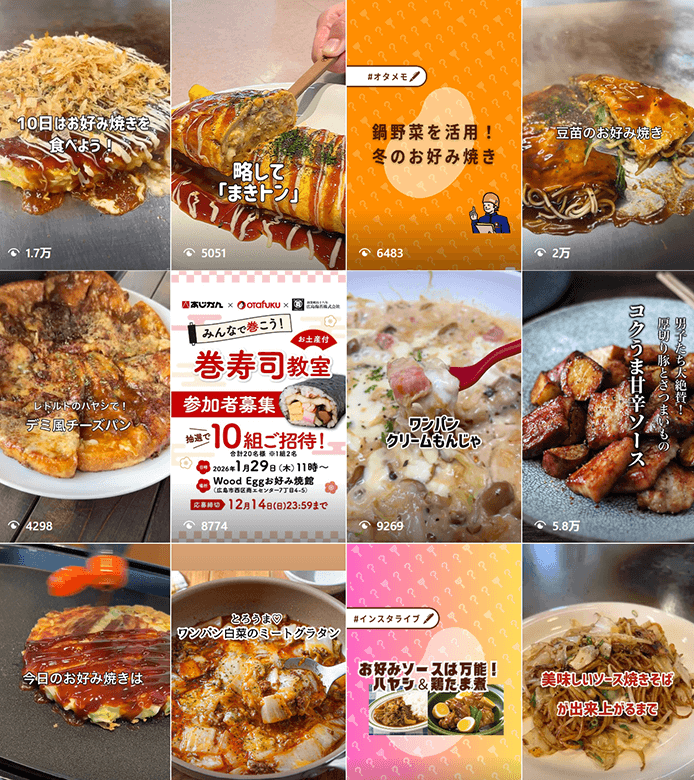 柴田様:10年前くらいに現場から上がった声をきっかけにInstagramを始めました。上層部もまずはやってみたらと。でも最初は恐る恐るで…。当時、Instagramはオシャレ感がないといけないみたいなところもあったので、「お好み焼き茶色いし無理だ…」と思っていたところもありましたし、外注しようと議論したこともありました。