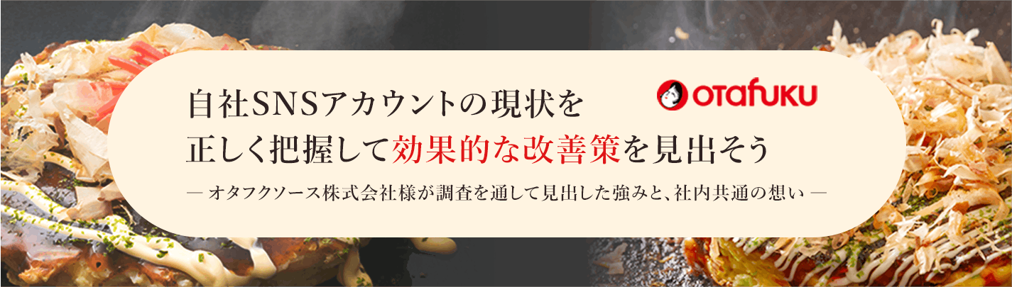 今回弊社で実施させていただいた調査結果からも、ユーザーの方々から親しまれるアカウントと読み取れておりましたが、今回のインタビューを通して、「お好み焼きを世界に広める」という共通の想いを持ったオタフクソースの皆さまが試行錯誤して作り上げてこられたアカウントだからこその結果だと改めて感じることができました。弊社の調査支援が今後の運用に少しでもお役に立ちましたら幸いです。