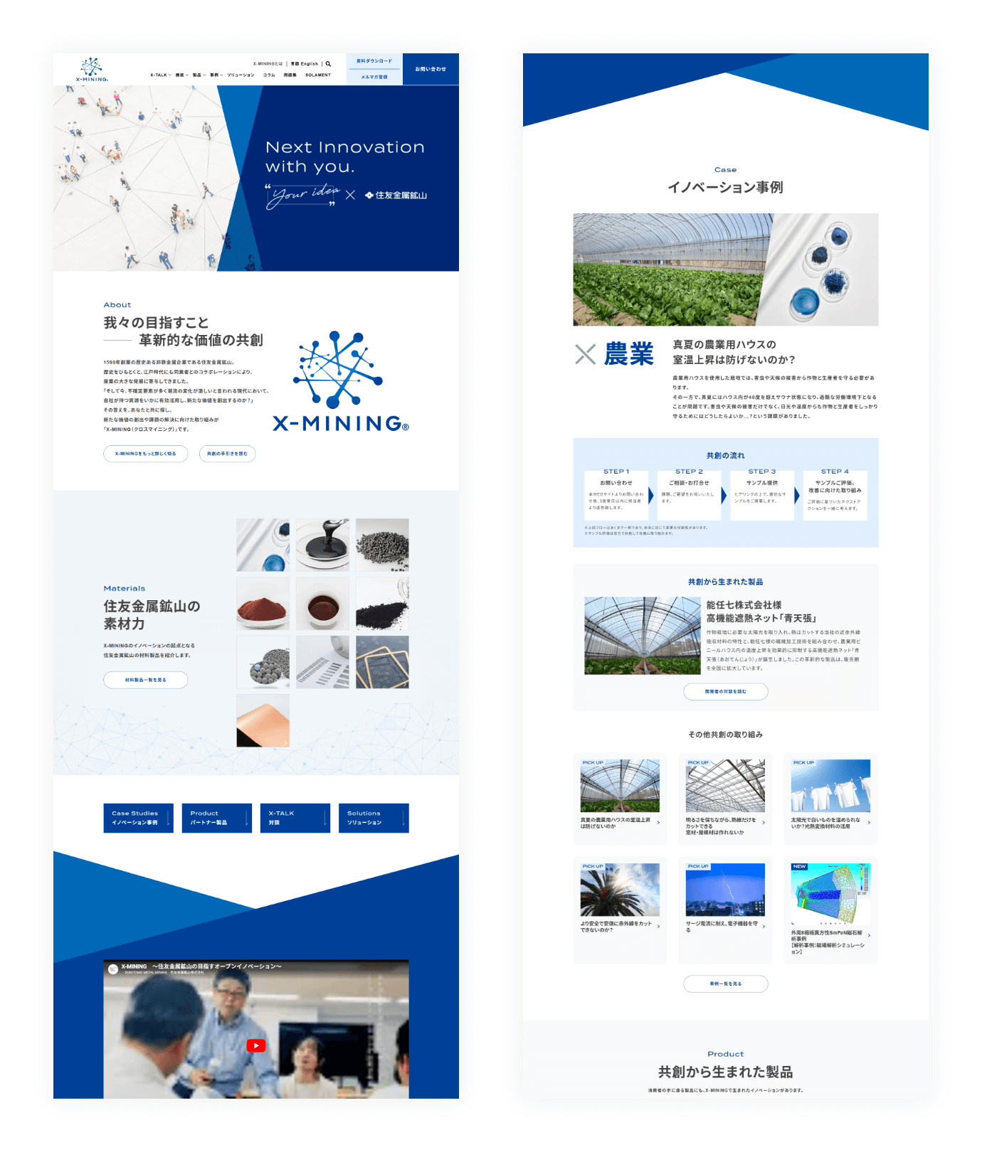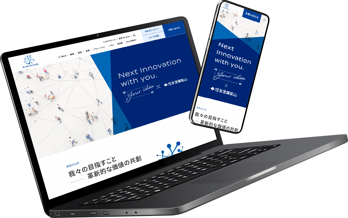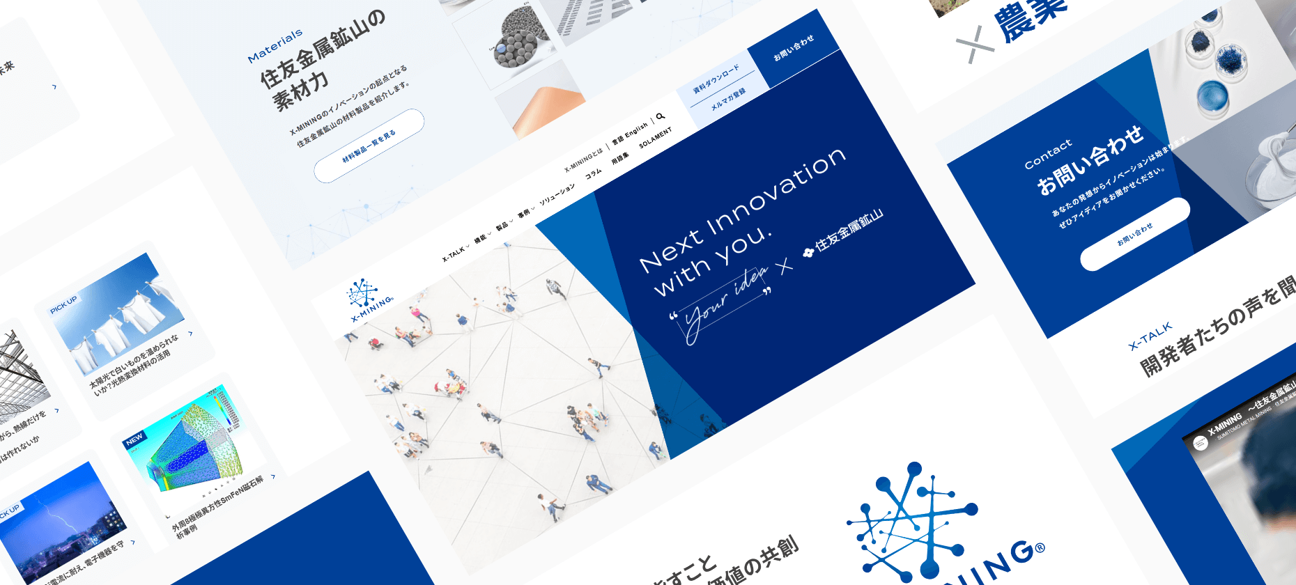 資源、製錬、材料という3つの事業を連携させながら「世界の非鉄リーダー」を目指す住友金属鉱山株式会社様。材料事業を担う機能性材料事業本部が2020年に立ち上げた情報発信サイト「X-MINING(クロスマイニング)」では、同社が長年積み上げてきた独自の技術と材料製品の力を広く伝えることで、新たなパートナーと出逢い、互いのアイデアを“共創”(クロス)させながら、新たな価値を“掘り起こす”(マイニング)ことを目的としています。