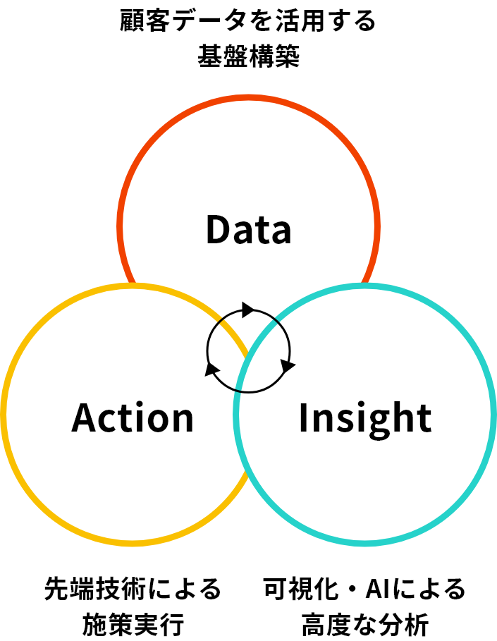 データ基盤構築からAI分析、施策実行までを垂直統合。
